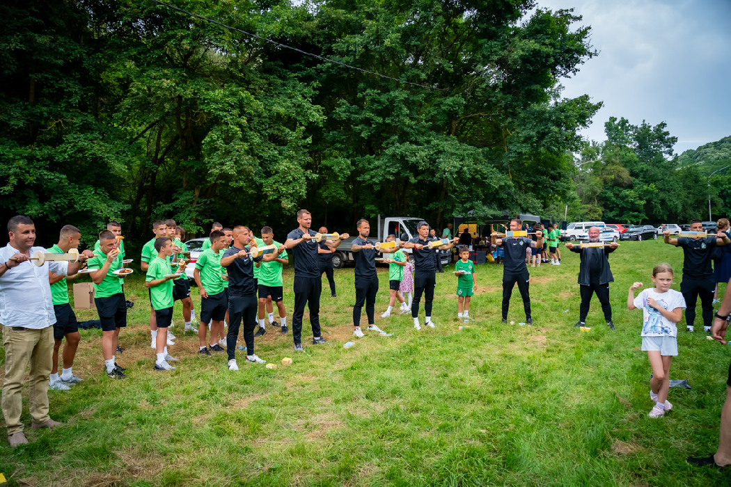 After receiving their trophies and medals for the incredible treble at the top of all championships in their ages, Ludogorets players and coaches indulged in outdoor fun. Adrenaline soared with various sports competitions that tested the accuracy, balance, concentration and mind of the Eagles and their mentors. The Green teambuilding included individual and team challenges, such as pulling tires, cutting logs with a saw, moving on barrels... Winners of the multi-component games were all participants who recharged their spirit and mood after a tough but phenomenally successful football season.